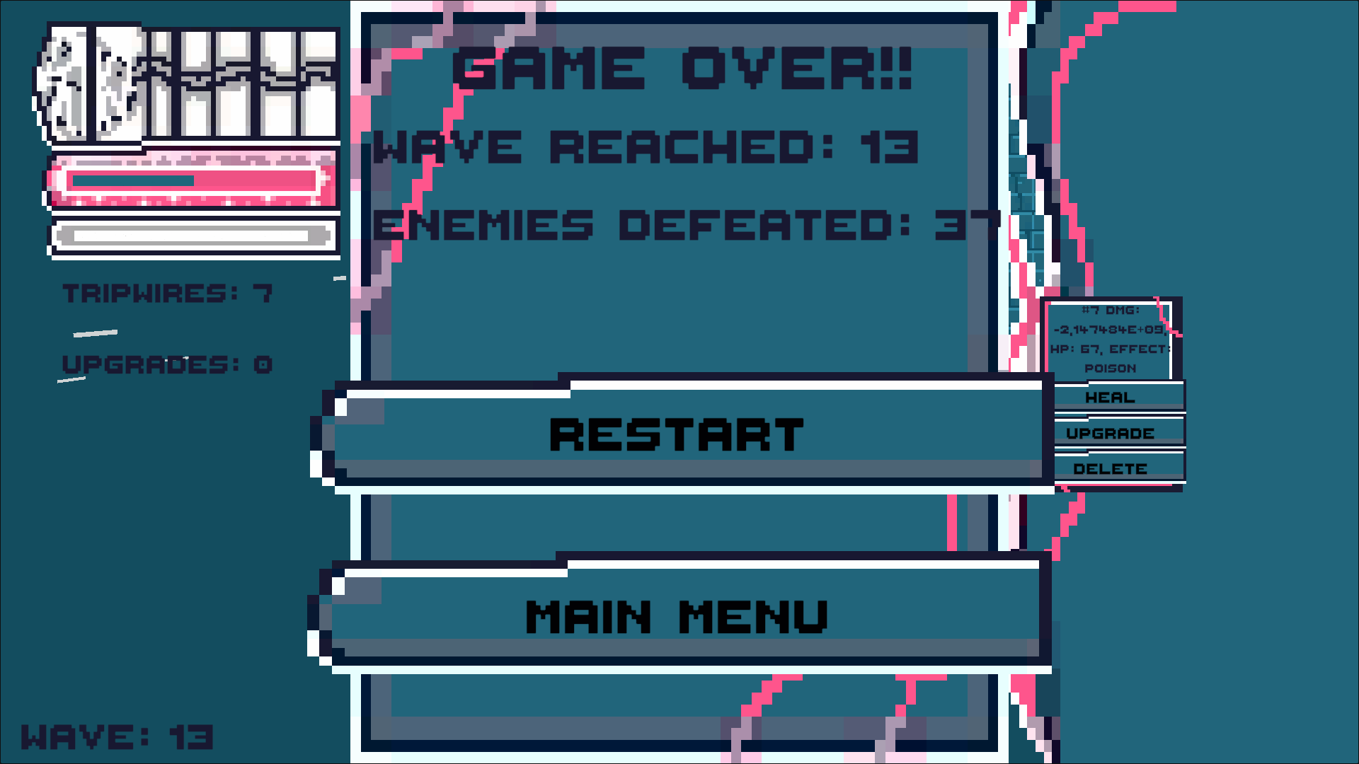 you play as a wizard with thread magic who doesnt really like ghosts you place tripwires by clicking, dash around to dodge, and upgrade your wires with crazy effects to wombo combo the ghosts and wipe them out. Each wave the ghosts get stronger, so you gotta be smart with your limited wires + upgrades. you can make crazy wire constructions ^^